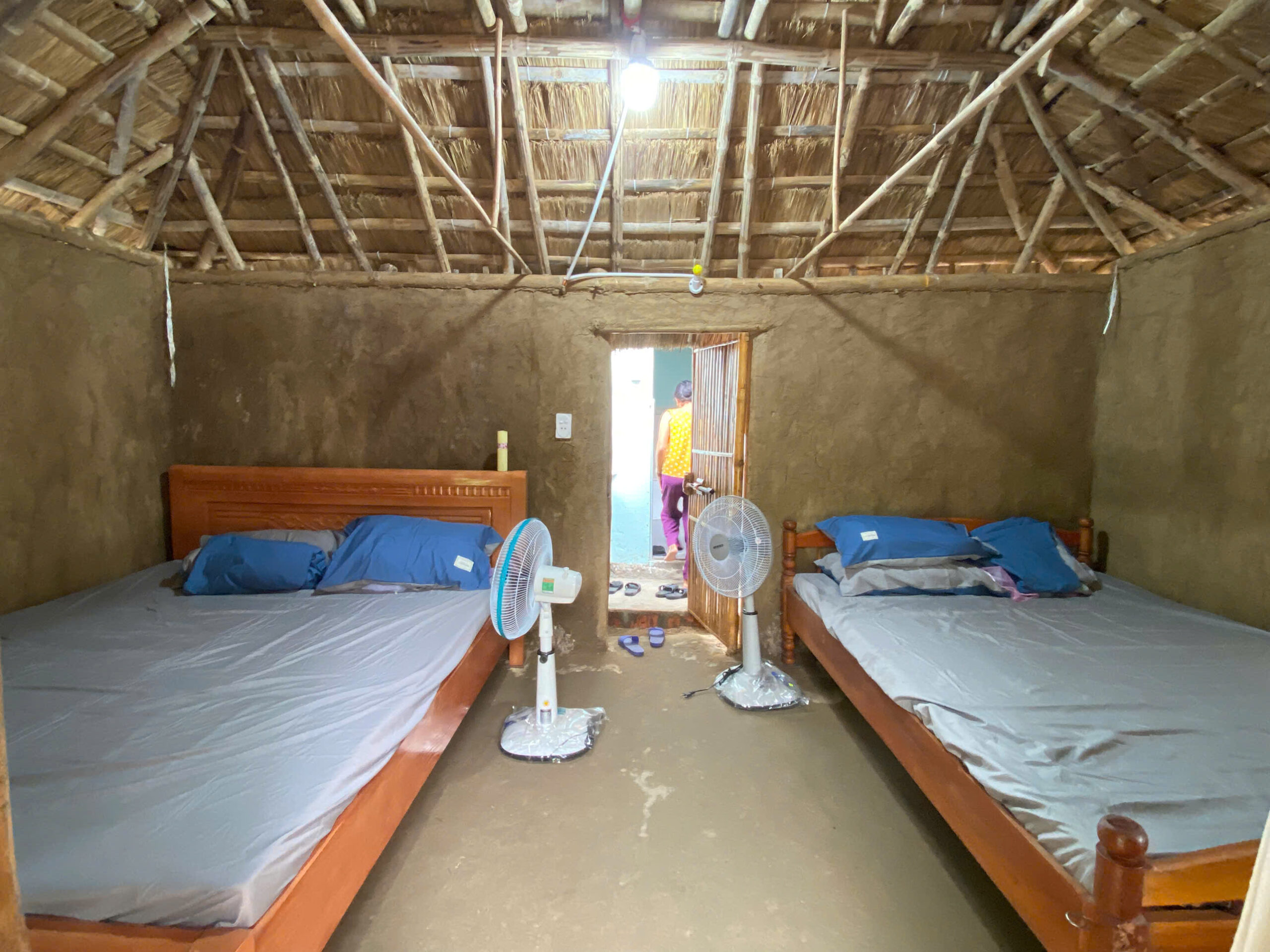 Ghe chèo homestay nằm ở đầu làng, là một gia đình chất phác, đôn hậu. Tất thảy du khách đều được chăm sóc như người thân trong nhà. Tuy hai bác chủ nhà đã khá lớn tuổi nhưng vẫn còn rất nhanh nhẹn, vui tính. Bác trai sống gắn với mái chèo từ nhỏ đến giờ. Bác yêu mái chèo, yêu biển nên sớm tối đều dành thời gian nhiều ở bãi biển – nơi ngư dân gặp gỡ, vá lưới hay giúp đỡ nhau kéo, đẩy ghe lên bờ…Bác gái rất giỏi lo chuyện đồng án, nấu nướng và luôn nở nụ cười hiền hậu khiến cho không gian homestay trở nên yên bình và du khách như được ở nhà mình. Homestay có thể đón được 3-4 khách.